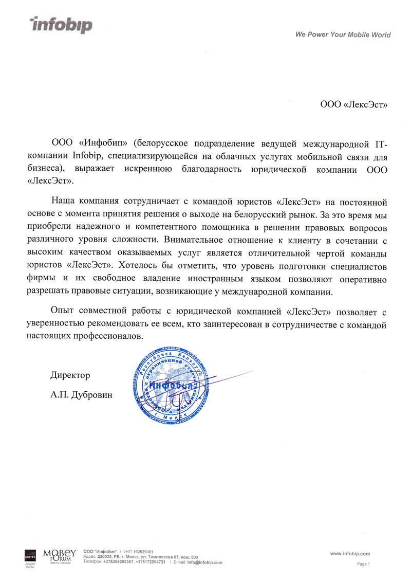 Наша компания сотрудничает с командой юристов "ЛексЭст" на постоянной основе с момента принятия решения о выходе на белорусский рынок. За это время мы приобрели надёжного и компетентного помощника в решении правовых вопросов различного уровня сложности.